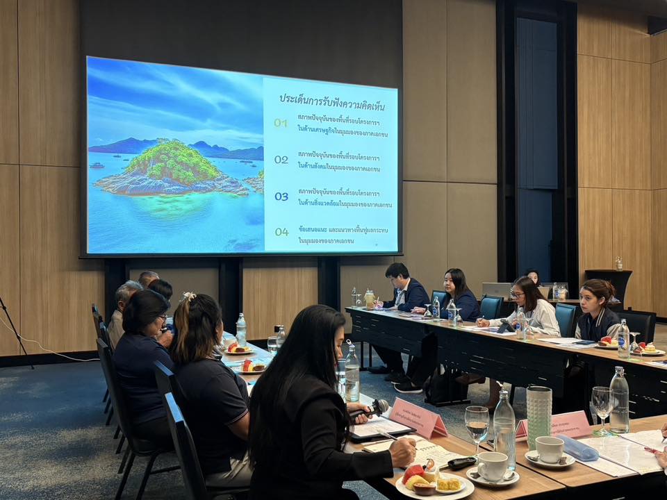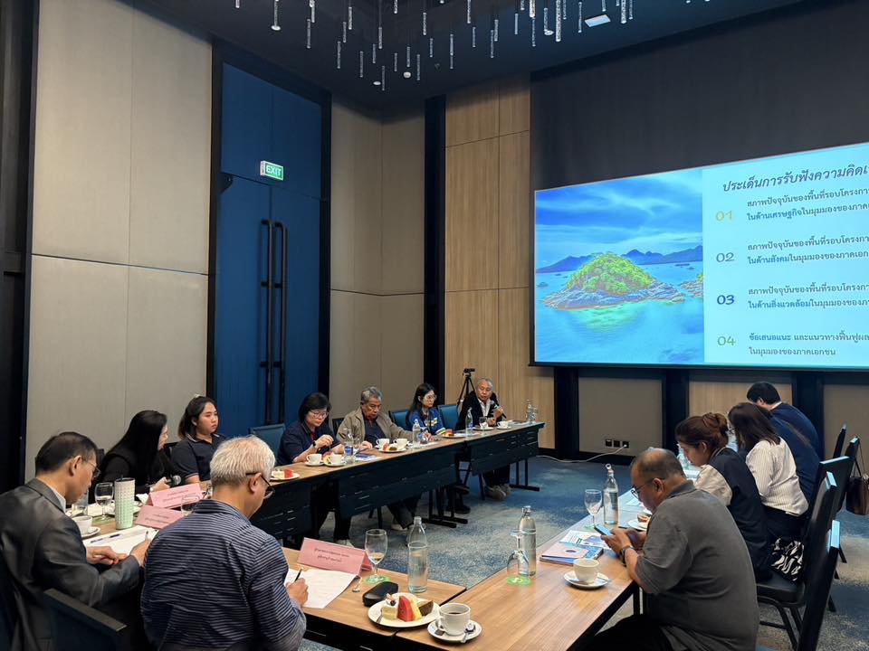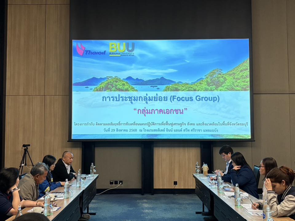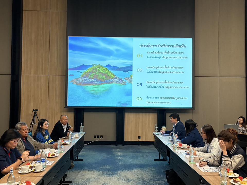 คณะที่ปรึกษา ฯ จัดประชุมรับฟังความคิดเห็นกลุ่มย่อย (Focus Group) กลุ่มหน่วยงานภาคเอกชน ภายใต้โครงการกำกับ ติดตามผลสัมฤทธิ์การขับเคลื่อนแผนปฏิบัติการเพื่อฟื้นฟูเศรษฐกิจ สังคม และสิ่งแวดล้อม ในพื้นที่จังหวัดชลบุรี กรณีน้ำมันดิบรั่วไหลกลางทะเลของบริษัท ไทยออยล์ จำกัด (มหาชน)